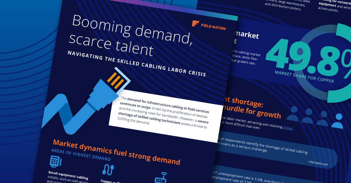 While demand for infrastructure cabling in field services continues to grow, service leaders are grappling with an unprecedented labor shortage. Learn how to navigate this challenge in your own..