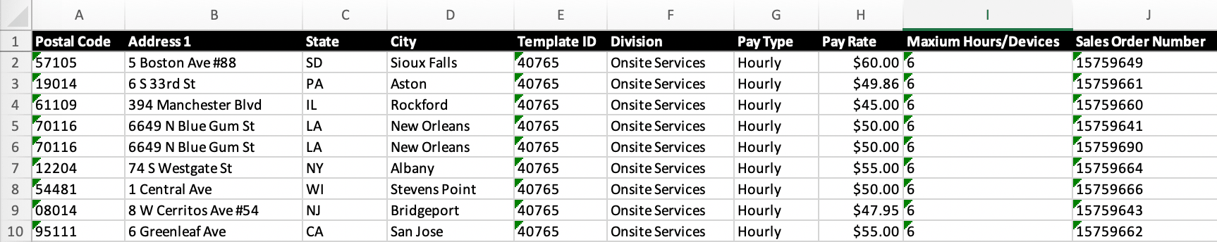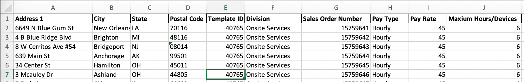 To obtain site-specific pricing, simply copy the pricing data from your column of choice (e.g., Median Hourly Rate) and paste those values into the original Pay Rate column. Once you’ve done that, you can delete the columns that were added by MarketSmart Insights. The resulting file can now be run through the standard mass upload process. Each of the created work orders will have pricing appropriate to local market conditions.