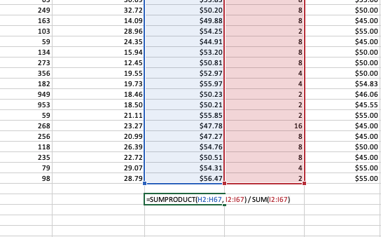 Using these values, you’ll perform a weighted average calculation to arrive at the blended rate. Scroll to the bottom of your file and add the given calculation using the SUMPRODUCT and SUM functions.