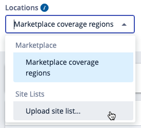 Next, navigate to MarketSmart Insights, click on the “Locations” drop-down, and select “Upload site list”. In the dialog box that appears, add your Excel file, give the list a meaningful title, and click “Import Site List”.