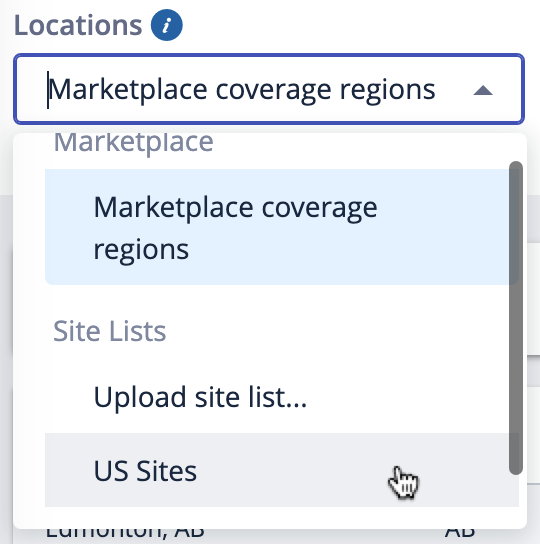 From here, you can use your original site list to generate a report of the actual achieved pricing for your project by selecting your original site list from the “Locations” drop-down. If you deleted the site list, you’ll need to re-upload it.