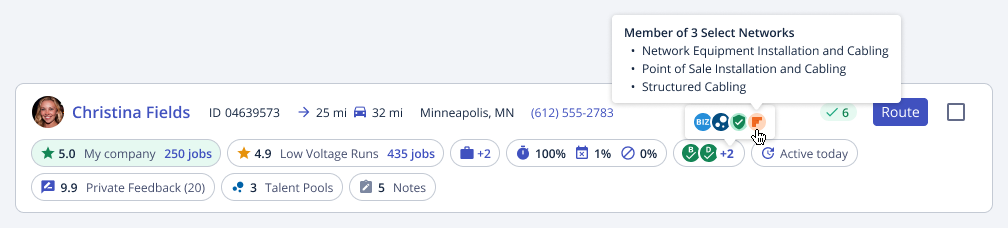 Using the new Provider Match view, you can quickly apply a ‘Select Networks’ filter and select ‘AV and Digital Signage’ to view only technicians who belong to this highly skilled group.