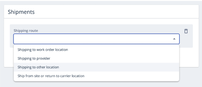 For buyers, there is a new option in the ‘Shipments’ section of the work order called ‘Shipping to other location.’