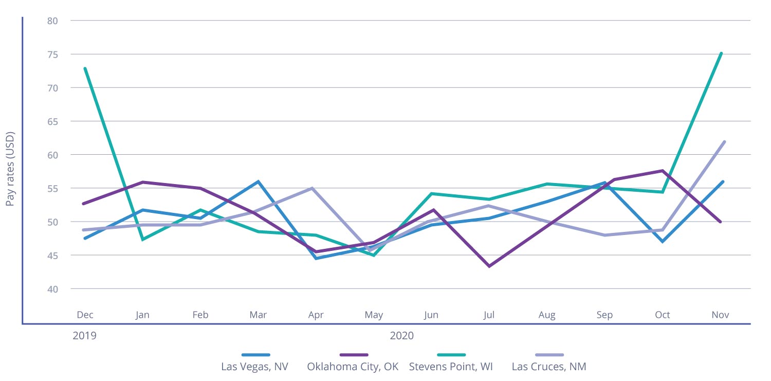 Let’s look at another example. This time, the pay averages are tied to AV technician hourly rates on Field Nation from 10/26/19 through 10/26/20.