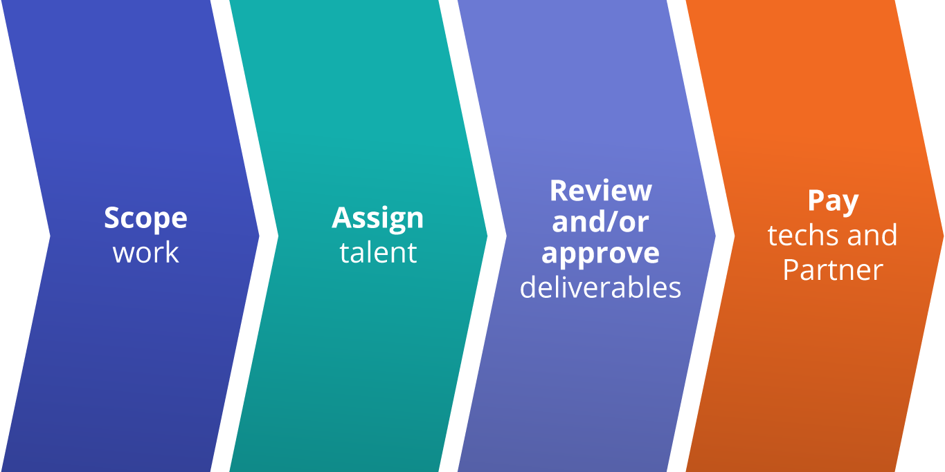 Our network of Platform Management Partners are highly trained on Field Nation, know the ins and out of vetting and sourcing talent, and understand how to deliver quality service. A few of their other capabilities include: